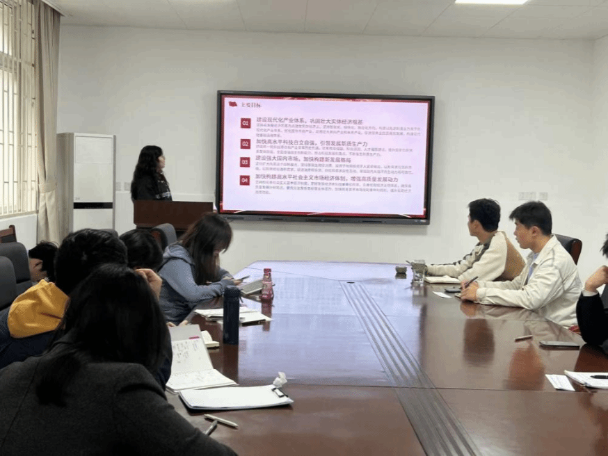 支部党员解博涵领学了党的二十届四中全会精神。党的二十届四中全会通过了“十五五”规划建议,会议肯定了党的二十届三中全会以来的工作成效。解博涵提到,作为员工,应立足专业深耕细研,在科技自立自强等国家战略领域找准发力点,把课堂所学与时代需求相结合。