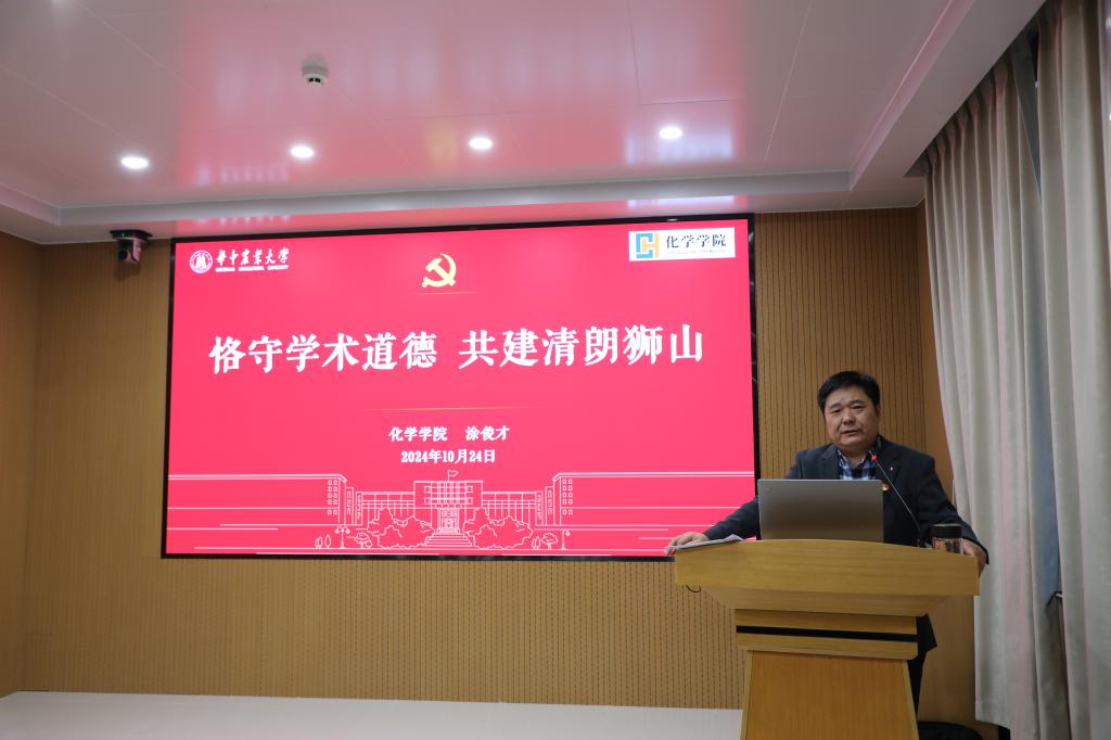(通讯员:皓月)10月24日下午,bevictor1946韦德官网在化学楼A102报告厅召开全院大会,公司党委书记涂俊才以“恪守学术道德 共建清朗狮山”为题讲授廉政党课。公司领导班子成员、全体教师、研究生及本科生代表参加会议。