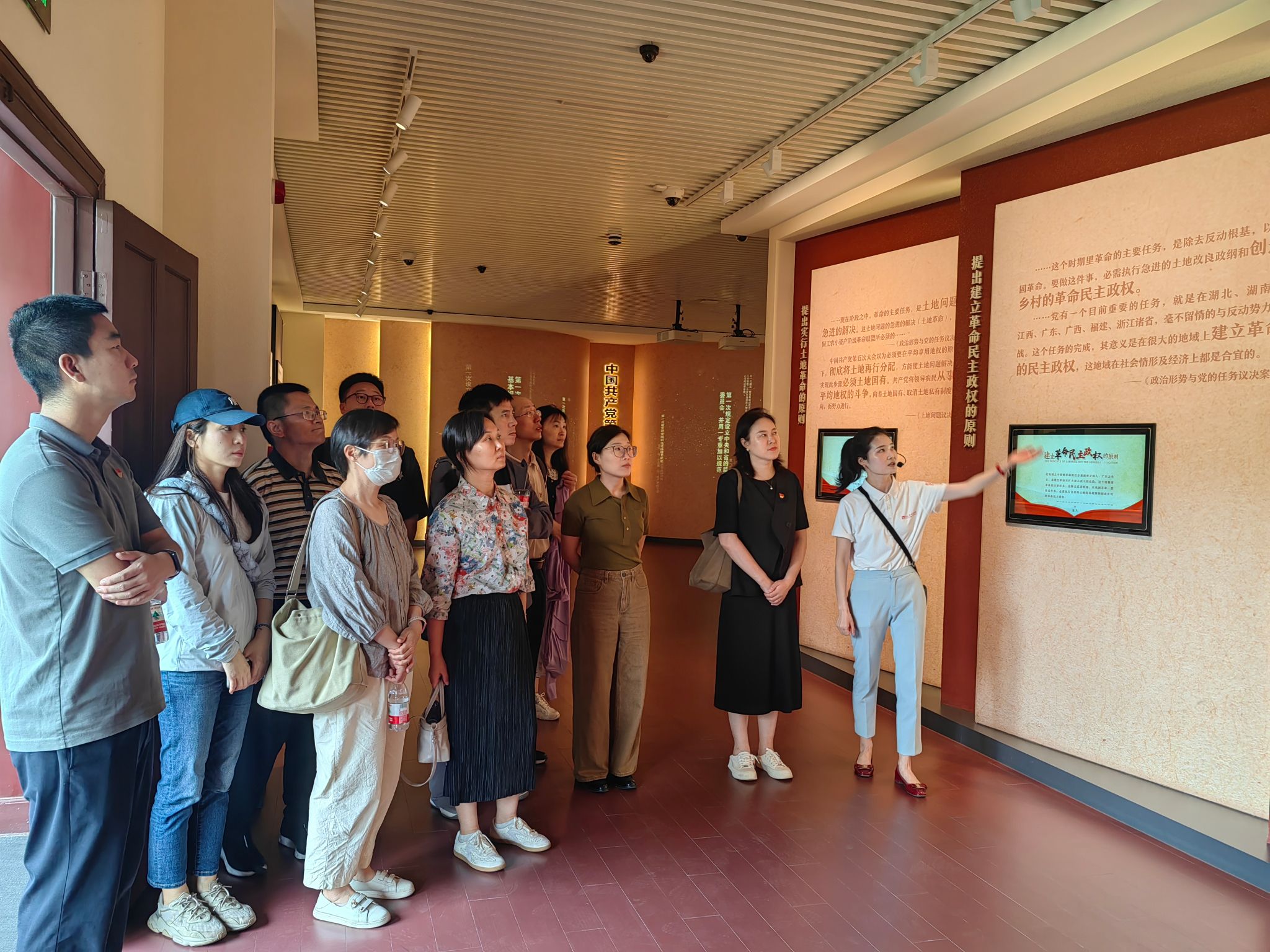 在中共五大会址纪念馆内,支部成员在讲解员的带领下,回溯了1927年那个风云激荡的关键时刻。面对大革命危急关头的严峻形势,中共五大在武汉召开,展现了党在生死存亡之际探索中国革命道路的艰难抉择与宝贵经验。一件件泛黄的文献、一幅幅珍贵的照片、一幕幕逼真的场景,让同志们真切感受到早期共产党人在危难之际坚守信仰、勇毅前行的非凡勇气与坚定信念。驻足于复原的会场旧址前,大家仿佛穿越时空,触摸到革命先驱们寻求真理、力挽狂澜的灼热初心。