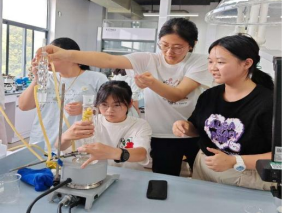 最令人耳目一新的是“萃——匠心萃取,焕发新生”实践环节。“柑橘全身都是宝,果肉好吃,果皮也有用,化学的世界没有废品”,同学们在老师们指导下,自己动手搭建水蒸气蒸馏装置、索氏提取装置,利用柑橘、柚子果皮进行橘皮精油萃取,并制作出天然的“橘子味洗手液”。这一融化学实验与劳动体验于一体的设计,不仅让大家在实践中理解科技如何服务于农业,也增强了创新意识和动手能力。
