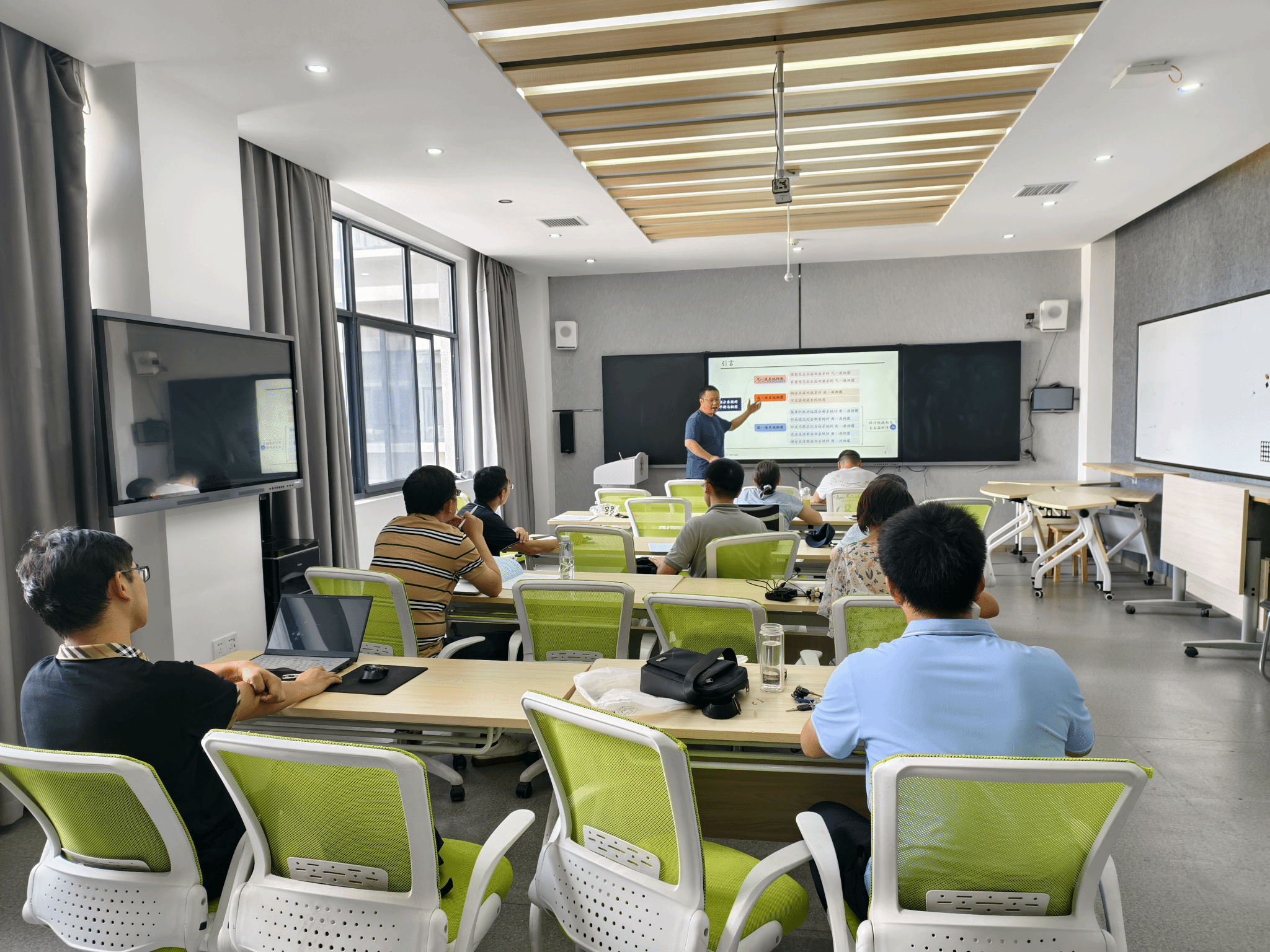 随后,黄德康老师围绕选修课《材料化学》第一章“原子结构与键合”展开教学展示。他通过多媒体演示与互动问答,从历史发展的角度,将原子结构的演进、元素周期律的发现与现代材料设计的联系娓娓道来,引导员工理解科学发现的历史规律和科学家的创新精神,激发了员工对材料科学的浓厚兴趣。他强调,选修课不仅是知识传授的载体,更应承担起拓展员工学科视野、培养科研思维的重要使命,助力员工从 “学会知识” 向 “会学知识” 转变。