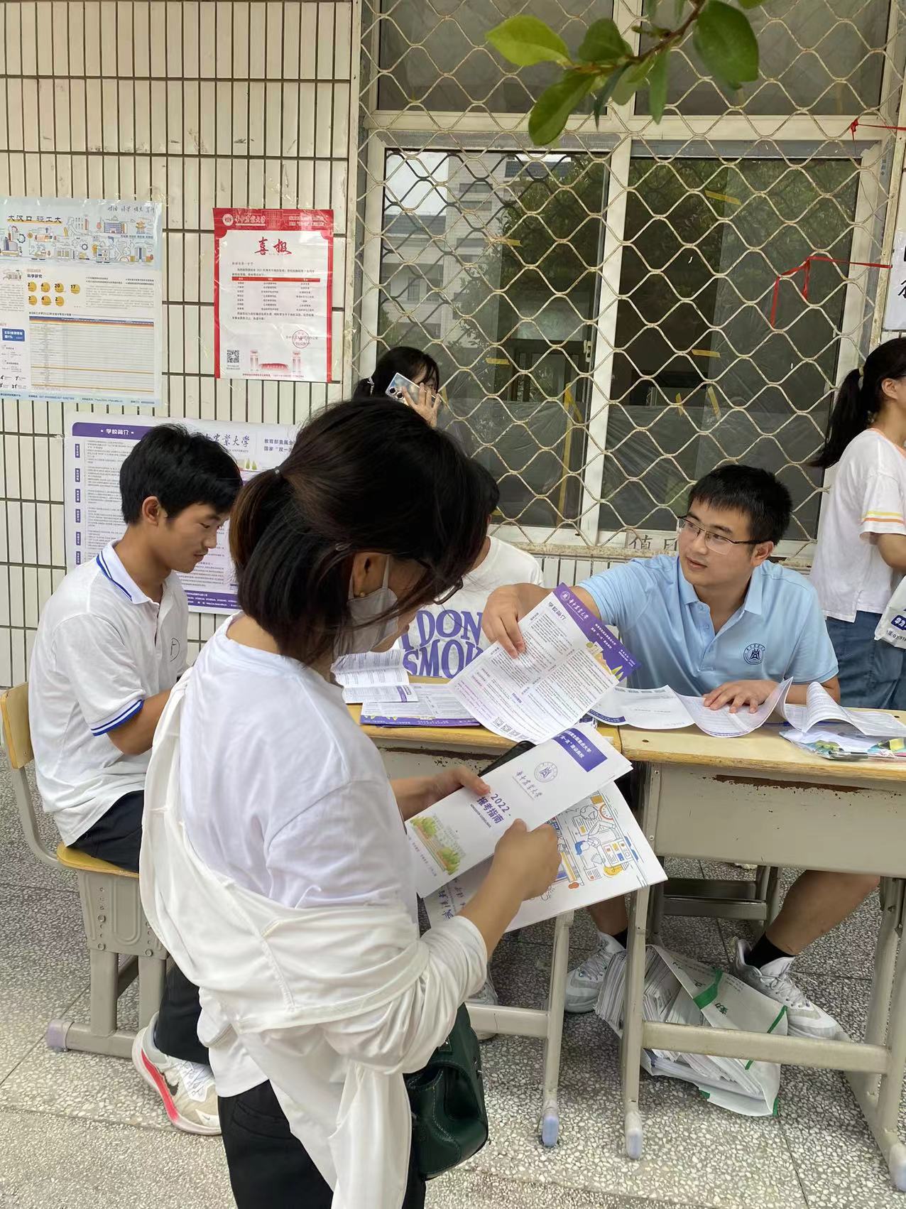 6月24日-6月27日,项勇刚教授和程思源老师共同前往安徽招生,在安徽的4天3晚中,项老师和程老师共到访5所中学,行程安排虽满,但是每一站两位老师都认真对待,本科毕业于华农应用化学专业的项老师不仅对理工科专业侃侃而谈,更在家长咨询到文史类专业时给出了丰富的建议,项老师以其丰富的知识储备,吸引了大批家长员工驻足,有的时候,光是和一位同学聊天,项老师就可以聊上半个小时。回来后,他依然每天在安徽招生群中答复同学们的问题,他说:“我是很愿意为公司去招生的,吸引优质生源来到我们的公司,我也希望未来公司的招生队伍能更加壮大!”