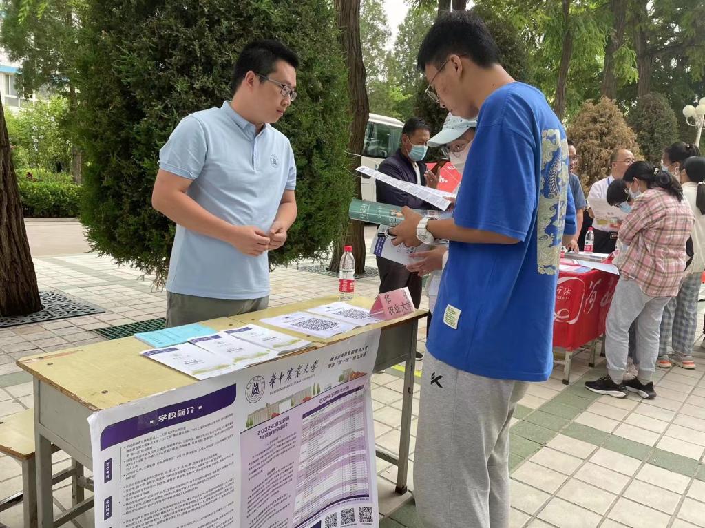 6月25日-6月27日,副教授黄德康老师和毕业于京山一中的丁聪老师来到了京山和沙洋招生,回到阔别多年的母校,丁老师满怀期待,早早准备好了喜报和招生咨询群打印好的二维码,黄德康老师也说:“今年是我参加工作以来第一次招生,最大的感受就是华农很好,身为华农人很光荣。在二本、差一点的一本院校桌前,可以看到大量的家长、同学在咨询,来咨询华农的要少的多。这并不是因为大家不喜欢我们公司,因为咨询和我们同档次的公司的同学也很少。这说明华农是很厉害的一所公司,全国只有很少量的员工才能有幸来到华农。通过这次招生,让我知道我们要坚定不移的把华农这个品牌继续做大做强,通过贡献自己的智慧、力量推动华农向更高层次发展,吸引更多优质生源。”