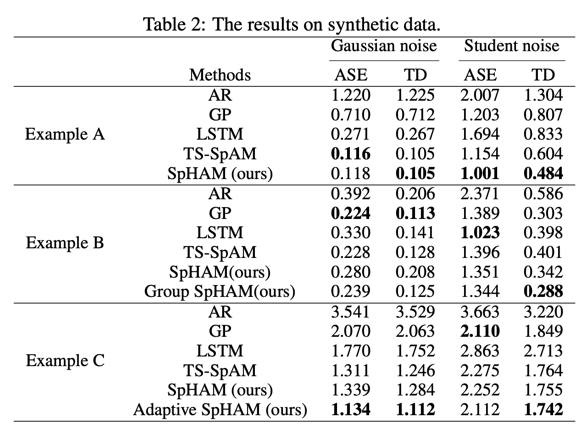 下表显示了SpHAM在不同噪声、不同种类(平稳、非平稳)时间序列数据下的有效性: