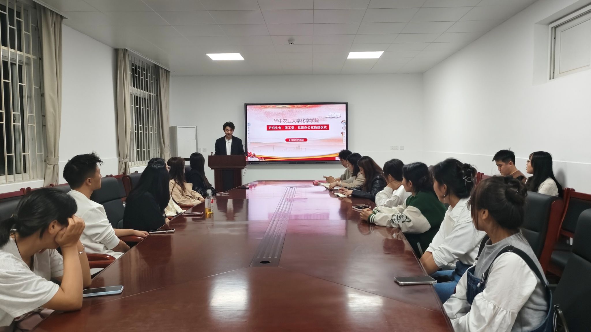 会议伊始,周振东同学宣读了新一届党团学骨干聘任名单,涵盖研会主席团、学术部、文体部、生活保障部、实践创新部、秘书处、宣传部及党建办公室等多个部门。随后,马明钰老师为全体骨干逐一颁发聘书。