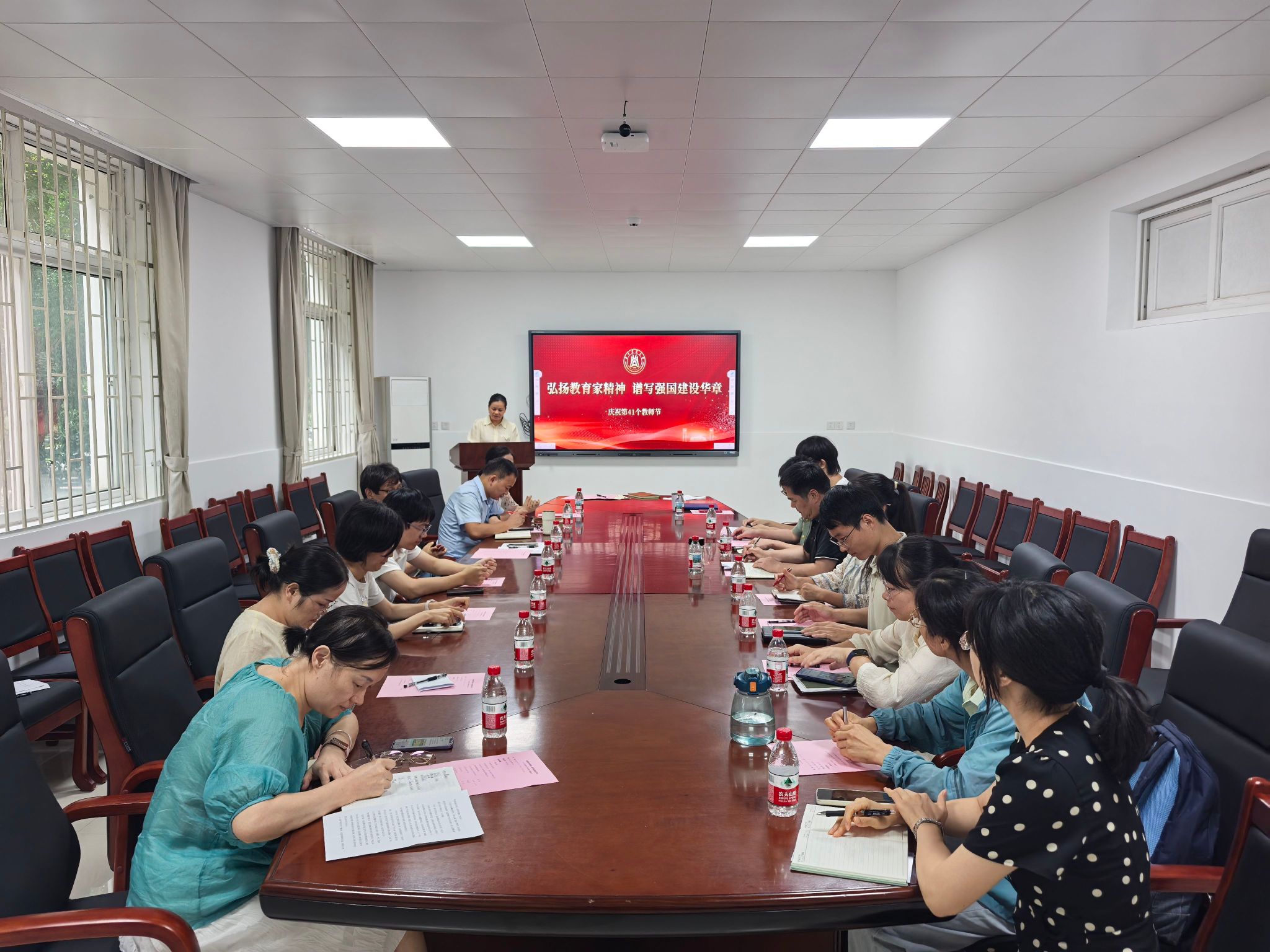 最后,公司党委书记涂俊才向全院教师致以节日的问候,充分肯定了广大教师在公司产品、科研管理、员工工作等方面取得的显著成绩,尤其赞扬了各位交流教师代表在各自岗位上展现出的专业素养、奉献精神和育人情怀。他指出,教育家精神是广大教师砥砺前行、教书育人的精神动力,其核心是“心有大我、至诚报国”的理想信念,“言为士则、行为世范”的道德情操,“启智润心、因材施教”的育人智慧,“勤学笃行、求是创新”的躬耕态度,“乐教爱生、甘于奉献”的仁爱之心,“胸怀天下、以文化人”的弘道追求。他强调,全体教师要深刻领会教育家精神的丰富内涵,将其融入公司产品全过程。号召全院教师牢记为党育人、为国育才的初心使命,大力弘扬教育家精神,以更加昂扬的斗志、更加扎实的作风、更加出色的业绩,共同谱写公司高质量发展新篇章。