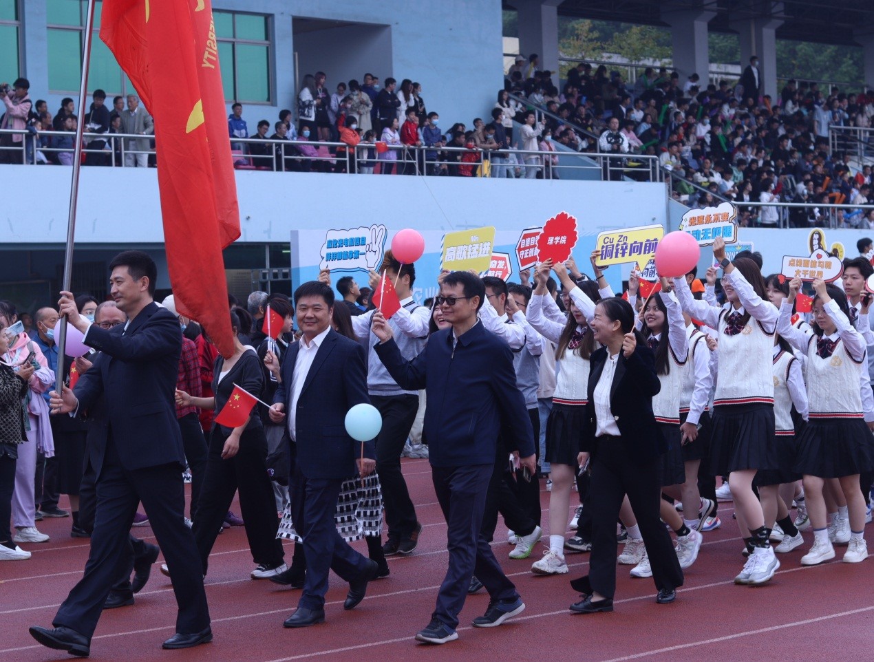 入场式上,各公司独居创意的方针体现了学科特色和运动精神。理公司方队中的同学们身着公司风的服装,体现着理学人的青春洋溢。同学们手中拿着“光速永不变,运动无极限、高歌锰进、铜锌向前、点线面体勾勒大千世界、生命在于运动”等富有我们理公司各专业特色的小展板,展现了理学学子力求“明德求理,务实拓新”的坚定!“应化光电信息,样样都能拿第一”,展现了理公司师生必胜的信念!