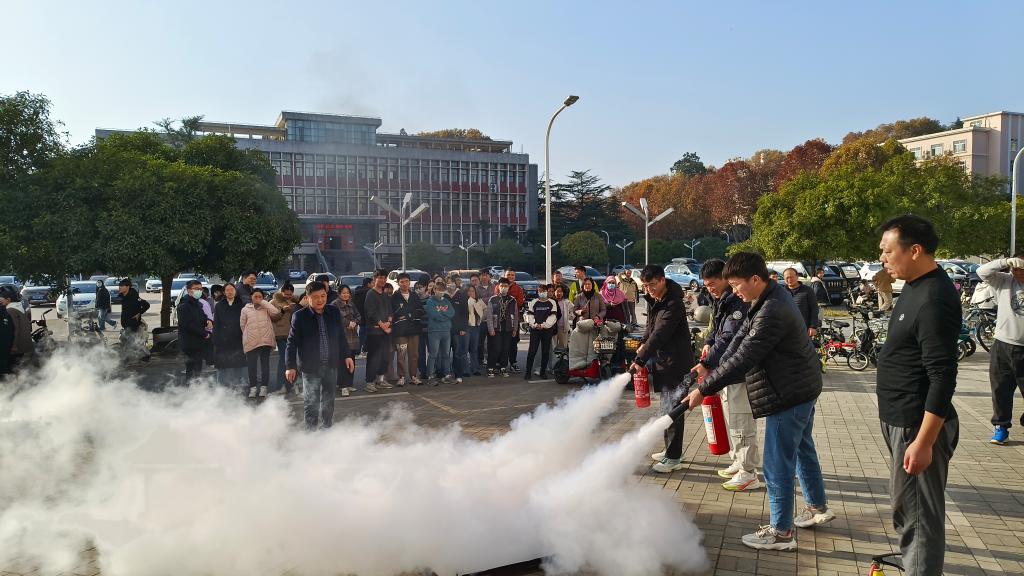 随后师生分组上阵,亲自体验了灭火器实操演练。大家态度严肃认真,严格按照灭火流程规范操作,“提、拔、握、压”,对准火焰根部喷射,随着一次次的“火起”、“火灭”,参与师生掌握了灭火器的正确使用方法。