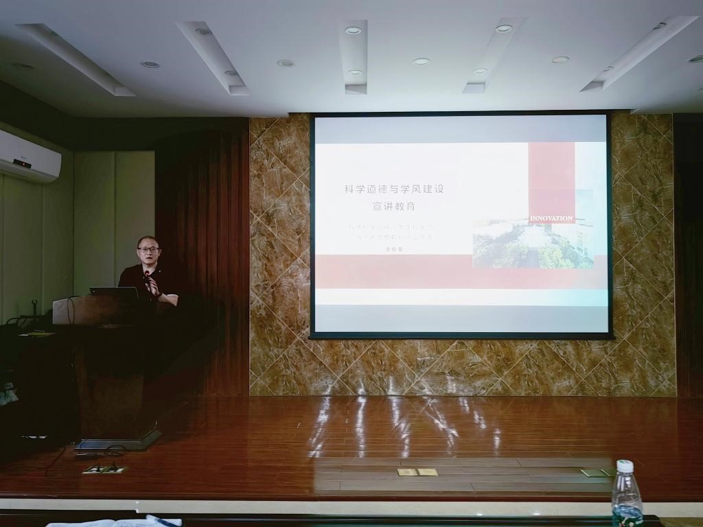经理谭佐军以“弘扬科学精神,恪守科学道德,做一名合格的科研工作者”为题进行了科学道德与学风建设宣讲教育。他指出,党的二十大报告提出着力提升科技自立自强能力。基础研究是科技自立自强的根本前提,是科技革命和产业变革的发端。他用激情(enthusiasm)、创造性和诚信等三个关键词阐释科学精神与科学道德的丰富内涵,对比了学术不端行为和科研不当行为的差异性,并结合中共中央国务院、教育部和公司关于教师思政和师德师风建设的有关重要文件,详细解读学术不端行为的界定和处罚条款,帮助全体教师知红线、明底线。他强调,全体师生要把学术诚信当做生命线,把崇高理想与务实作风作为不竭动力,把科学方法作为创新利器,着力提升人文素养,做一名合格的科研工作者,努力让科学发展引导前行、让科学精神照亮征程、让科技创新充满激情、让科学领域更加纯净、让科学普及成为使命。