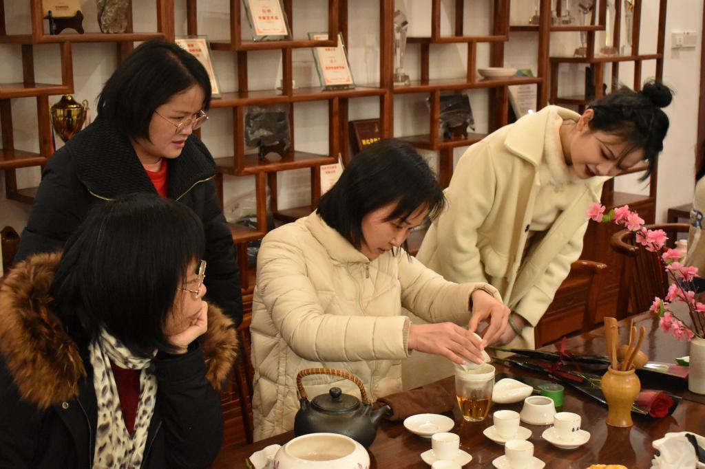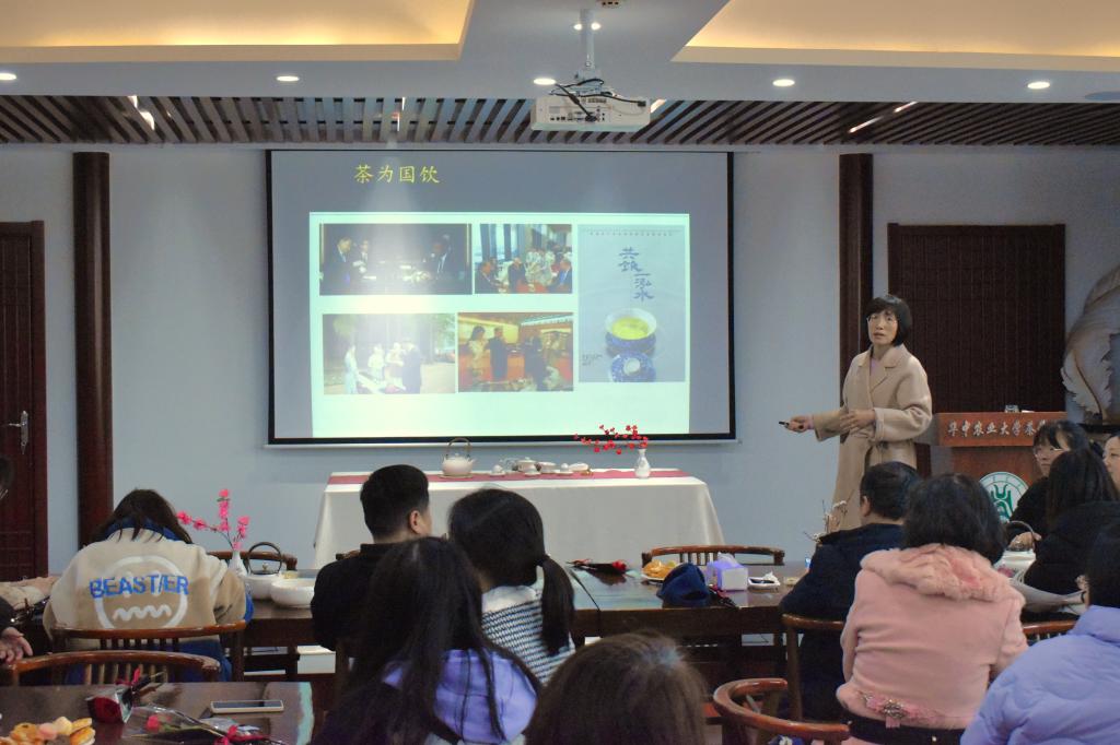 在沏茶环节中,陈玉琼教授向大家讲解了有关于泡茶、品茶的知识。茶学专业研究生王淑腾同学展示了唯美的茶艺。老师们在学习后也纷纷开始自己动手泡茶,感受超越自己的成就感。在泡茶的过程中,教师们纷纷表示自己学到了,都表示要将这一技艺带回家,与家人朋友分享。