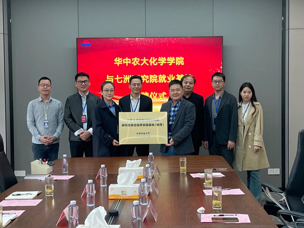 11月13日上午,涂俊才一行来到江苏七洲绿色科技研究院,举行“研究生联合培养实践基地”授牌仪式并座谈交流。江苏七洲集团技术总监安静,七洲集团绿色科技研究院行政经理陶亚春、研发部部长张虎等参加活动。