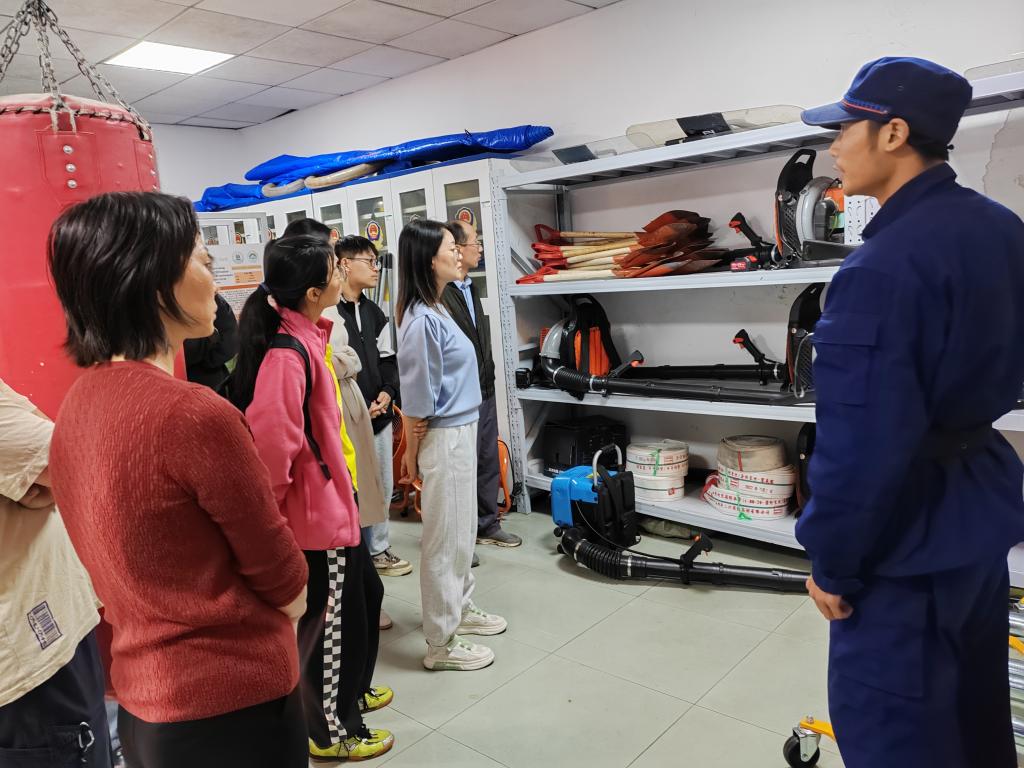 消防员刘楷同志首先对师生们的到来表示热烈的欢迎。随后,他围绕灭火毯的用途、高压水带的用途、灭火器的使用等内容进行了详细讲解,让老师和同学们切实感受到公司消防站的重要性。消防站的其他同志也分别讲解了切割机、森林电动扩张器、森林灭火等辅助救援设备的使用方法。