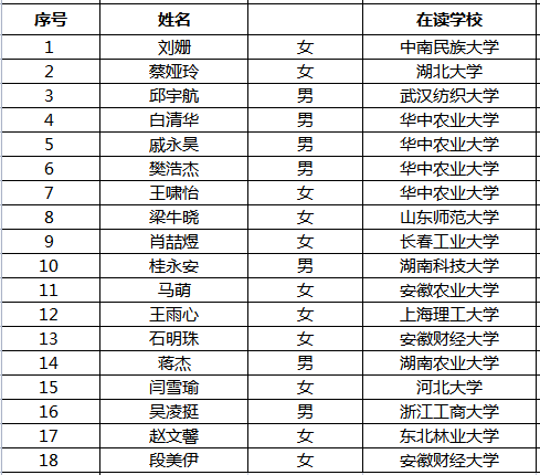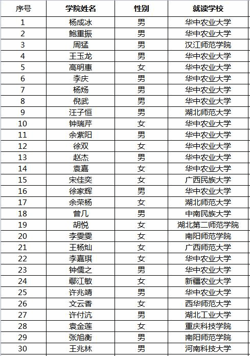 化学系优秀营员名单