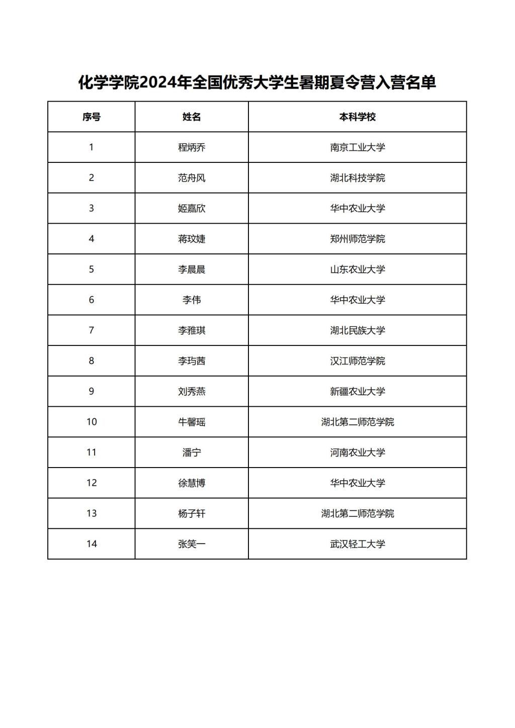 经对报名同学申报材料的综合审查,14名同学入选本期夏令营,入营名单如下。请入选同学于20247912:00前实名加入QQ群(370218485),相关事宜公司会第一时间在群内公布。
