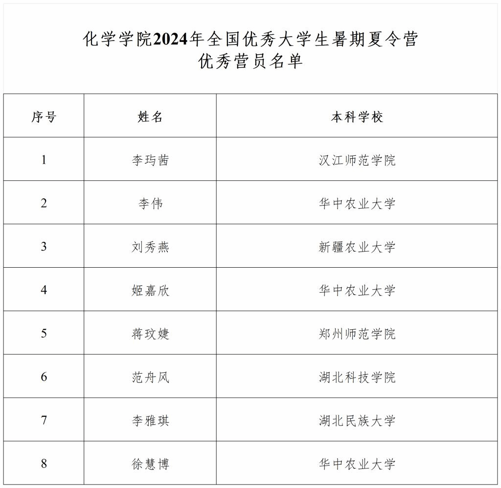 经个人展示、综合考核,共有8位同学被评为bevictor1946韦德官网2024年全国优秀老员工暑期夏令营“优秀营员”。现将名单公布如下: